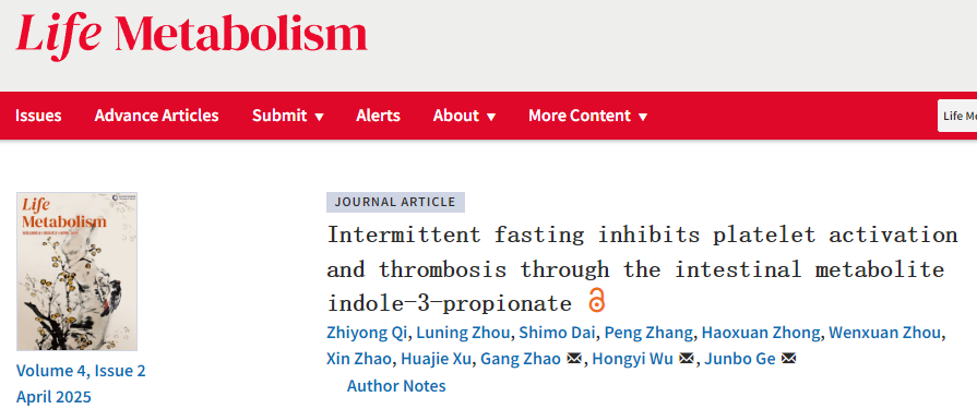 2025年2月,复旦大学附属中山医院葛均波院士等在《生命代谢》期刊上发表的一项研究发现:适当的轻断食不仅能让人更健康,还能降低血小板的“活跃度”,减少血栓形成的风险。
